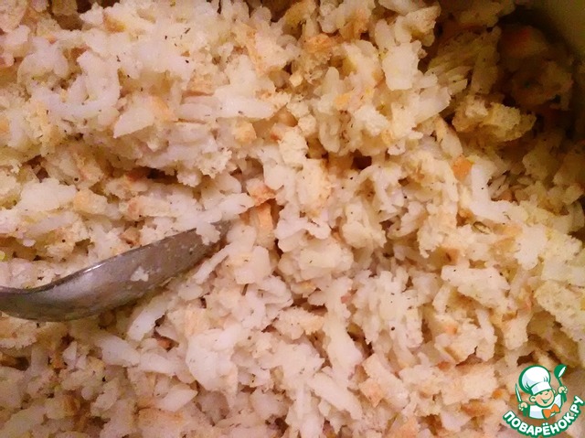 • Перемешиваем тщательно ложкой. Не разминаем, а просто перемешиваем