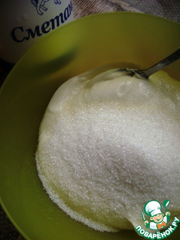 Пока пекутся булочки, свежую сметану взбить с сахаром.