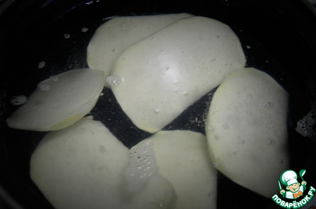 Опустить в подсоленный кипяток и варить 10-15 минут. Вынуть шумовкой и дать остыть.