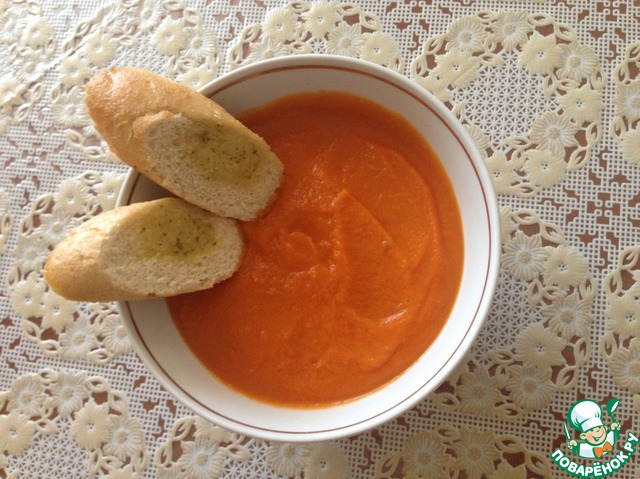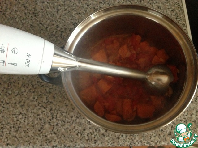 Предлагаю свой супчик для любителей крем-супов. Необычное сочетание вкуса помидорчиков, чесночка и сладкого батата.