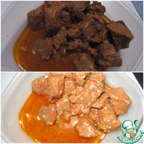 Мясо мягкое, сочное и с пикантным вкусом! Соус мрисса очень хорошо обогащает вкус мяса, кисло-сладкая нотка присутствует, а чеснок не преобладает.