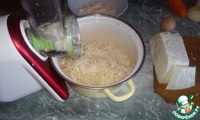 Шинкуем мелко капусту. Я использую для этого овощерезку, очень не люблю делать это вручную)