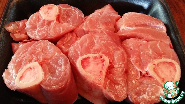 Телячья голяшка, пожалуй, самая дешевая часть туши, но от этого совсем не менее вкусная.