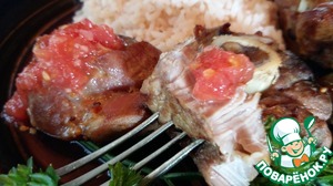 Приправой к мясу послужили тертые с чесноком помидоры.