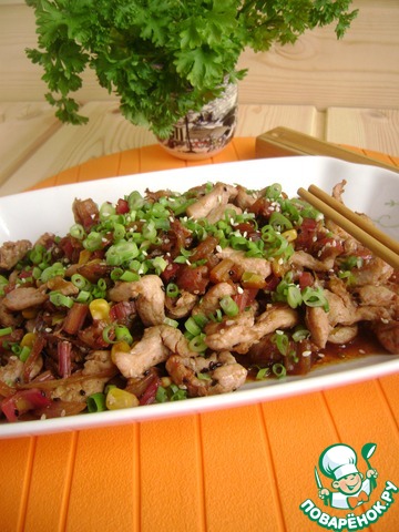 Рецепт «Стир-фрай из курицы с черешками мангольда»: