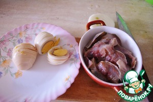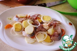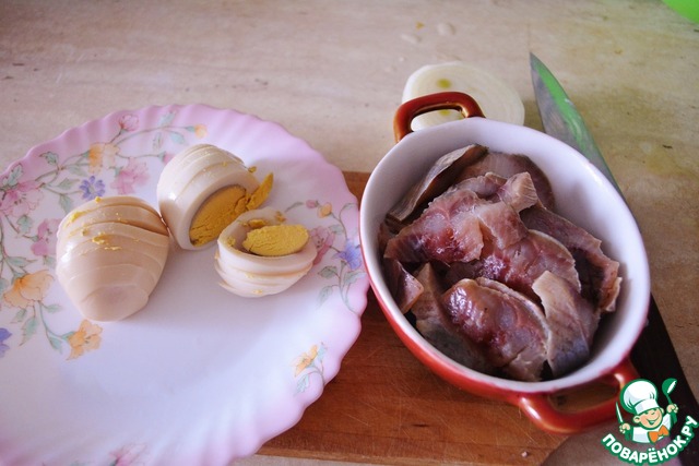 Яйцо тоже нарезаем кружочком а филе сельди ломтиками, стараясь сделать их как можно тоньше