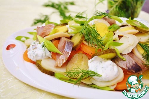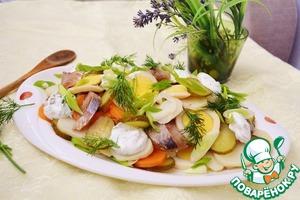 Ингредиенты для «Салат с копченой сельдью и овощами»:
