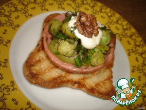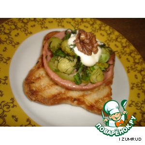 сверху майонез и орешек.