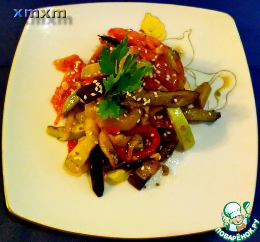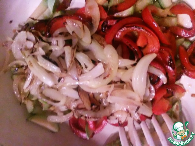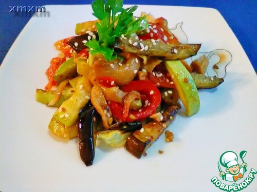 Предлагаю вам свой вариант теплого овощного салата. Готовим его часто, в сезон овощей. Минимум усилий, максимум удовольствия. Начнем...
