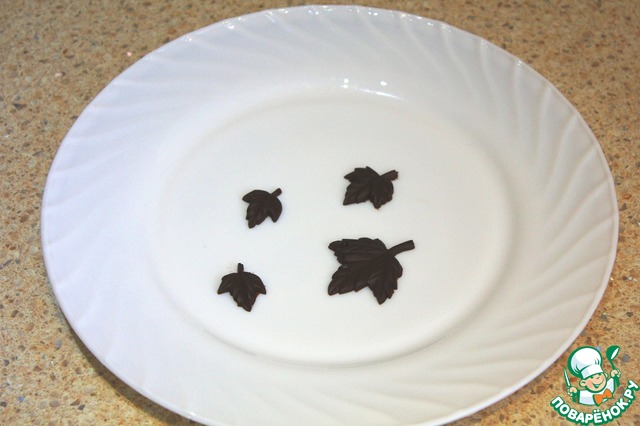 Для украшения нам потребуется темный шоколад и молд-форма в виде листочков.