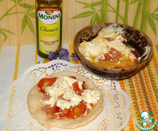 Поставить в микроволновку или духовку на 2 - 3 минутки, пока не расплавится фета.