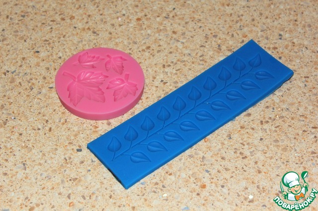 Для приготовления украшений для торта можно использовать молд-формы в виде листочков.