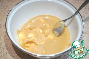 Сгущенное молоко варить в банке на водяной бане в течение 2 - 3 часов. После того как оно остынет, соединить с размягченным сливочным маслом.