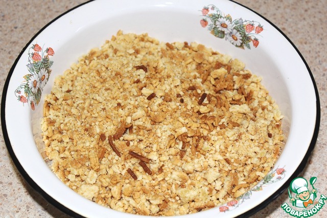 Готовое печенье снять с пекарского листа, измельчить в крошку.