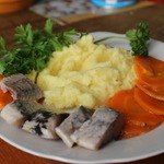 Плошку эту прикупила случайно, все никак не могла ее заснять, а тут селедочка хорошо в нее вписалась так)