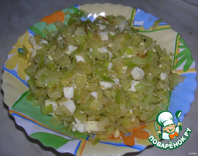 Начинка № 2 - капуста с яйцом. Капусту мелко порезать, и поджарить на сковороде, добавив растительное масло.