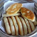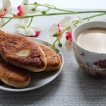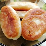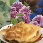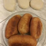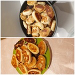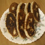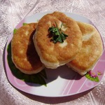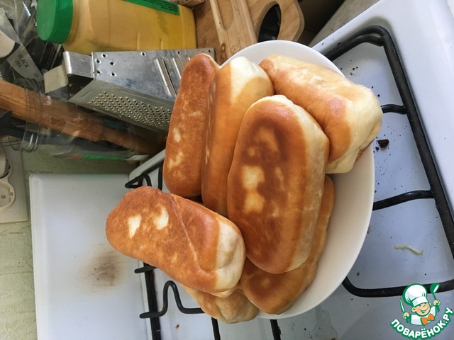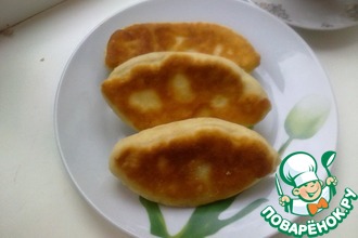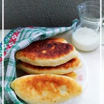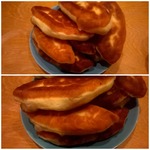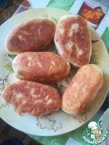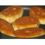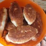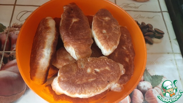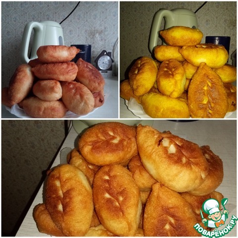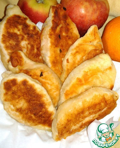 P. S. Мне захотелось в процессе готовки сделать несколько пирожков с яблоками. Для этого я очистила от кожуры несколько яблочек, потeрла их на крупной тeрке, выкладывала небольшое количество на лепешечку теста, посыпала слегка сах. песком, защипывала и жарила. Получилась тоже очень вкусно!