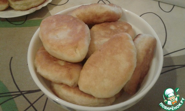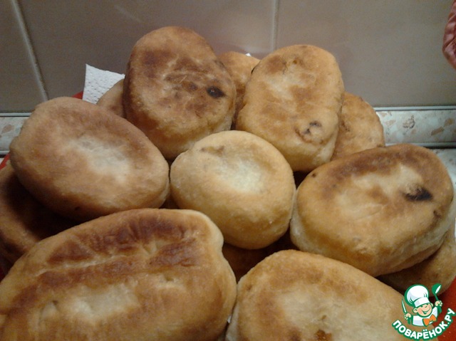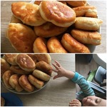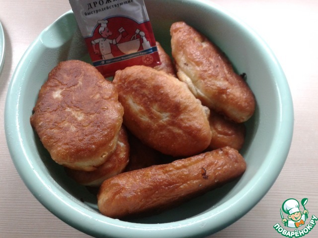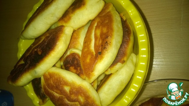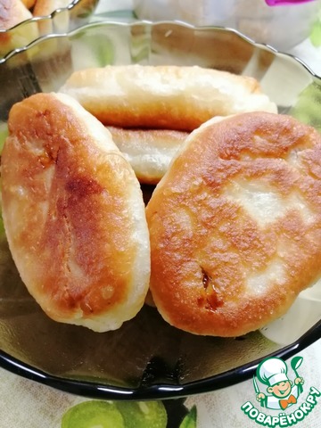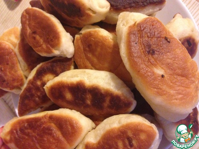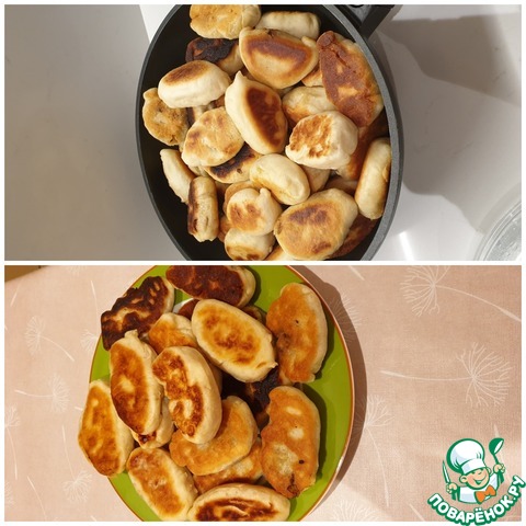 На смазанную маслом тарелочку я укладывала пирожки для расстойки на 10 мин. Потом я взяла сковороду, налила в неe растит. масло и жарила пирожки с двух сторон. Они жарятся очень быстро. Готовые пирожки сложила в кастрюлю и укрыла полотенцем.