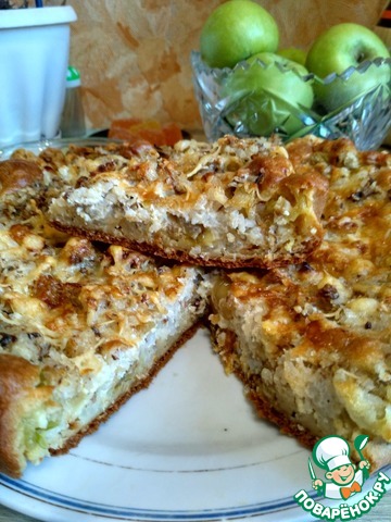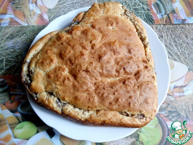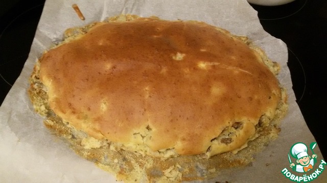 Далее - начинка - у меня ее было много, но, памятуя о прошлых неудачах, решила больше не делать...Хотя, лучше было бы сделать 2 пирога ...теста получилось мало, но моим так больше нравится.