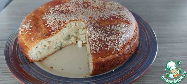 Рецепт «Заливной пирог с рисом и сайрой»: