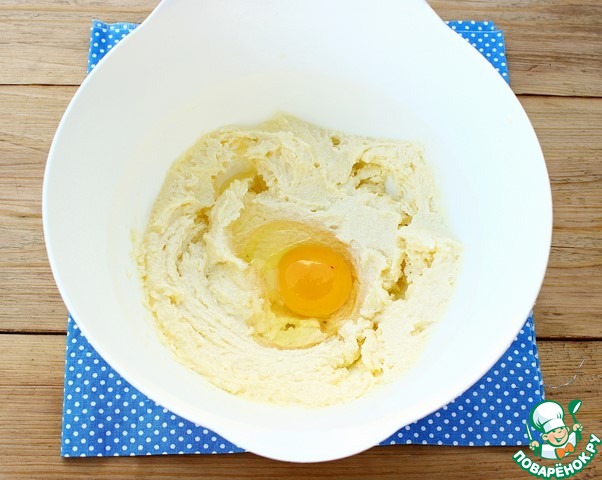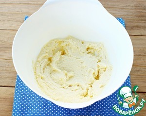Приготовим тесто. Соединим масло и сахар, взобьем миксером.