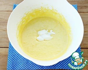 Добавляем муку и разрыхлитель, перемешаем ложкой, только до вмешивания муки.