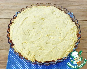 Выкладываем тесто равномерно, чтобы закрыть все абрикосы.