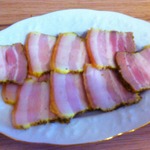Смачная грудинка для закуски, бутербродов, праздничной нарезки – готова. Хотя для праздничной-лучше взять кусочек по шире – просто симпатичнее смотреться будет.