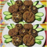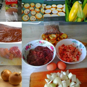 Перекрутить в мясорубке печень, лук, кабачки. Добавить гречку, яйца, куриное мясо, муку, перемешать. Добавить соль и перец.