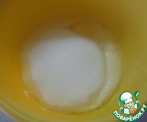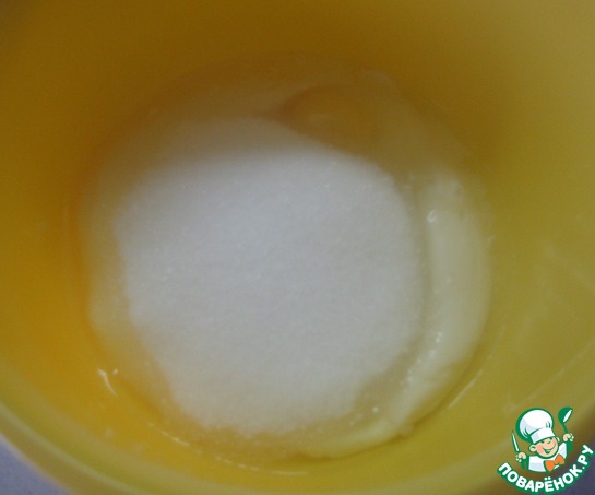 В миске смешать венчиком сахар, сметану и яйца.