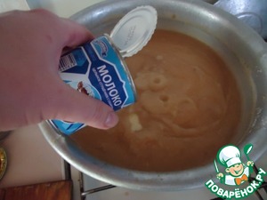 Влить сгущённое молоко, в состав которого входит только цельное молоко и сахар.