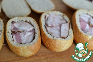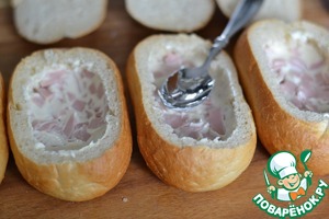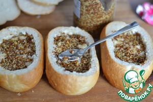 В каждую булочку выкладываем по чайной ложке горчицы.