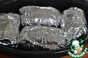 Приклоем крышечками и каждую булочку завернем в фольгу.