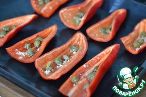 На каждую половинку выкладываем каперсы по 3-4 шт.