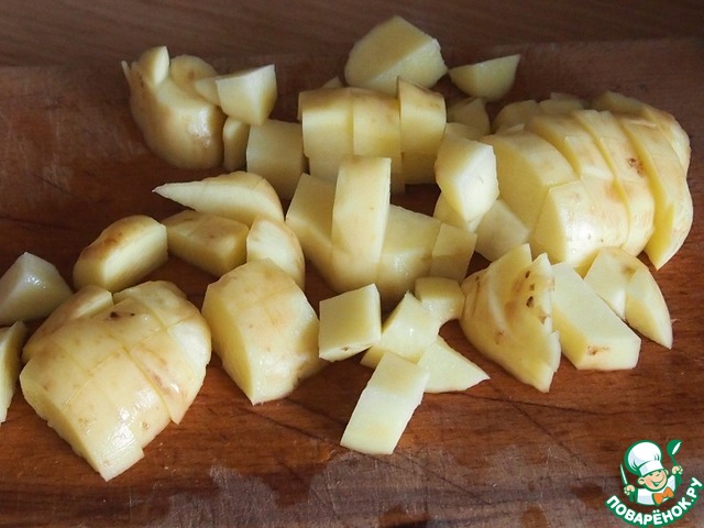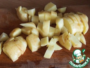 Пока варится рыба, очистить картофель, нарезать кубиками.