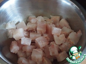 Рыбное филе нарезать на кусочки и добавить в кастрюлю. -