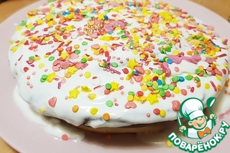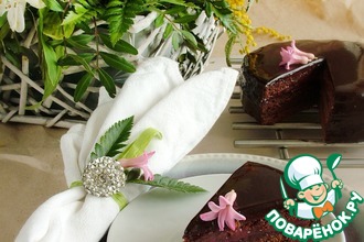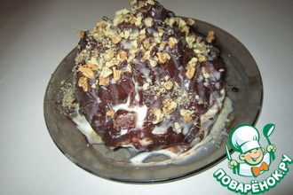 Приготовить глазурь, смешав все ингредиенты глазури и разогрев на огне в небольшой форме. Готовую глазурь вылить равномерно по поверхности торта.
