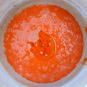Вот такой томатный фарш получается. Добавляем растительное масло и на плиту.