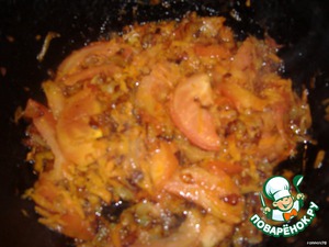 Морковь натереть на крупной терке, луковицу - дольками, тушить на растительном масле.