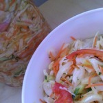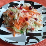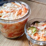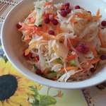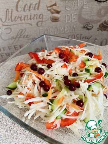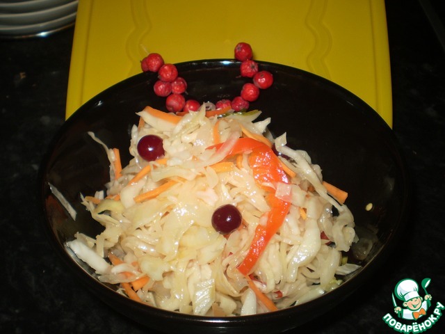 Еще раз тщательно перемешать, закрыть крышкой и оставить на сутки в комнате. Затем можно добавить ягоды брусники и т. п. Переложить в стеклянные банки, закрыть. Хранится такой салат в холодильнике до двух недель.