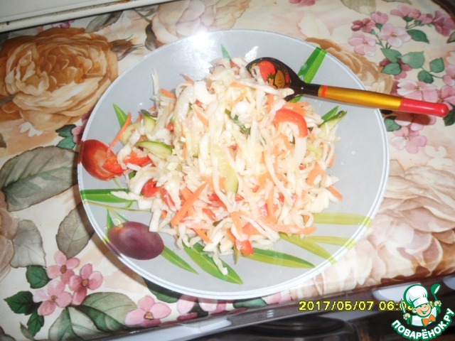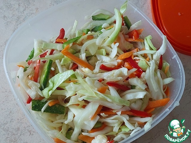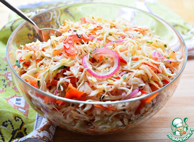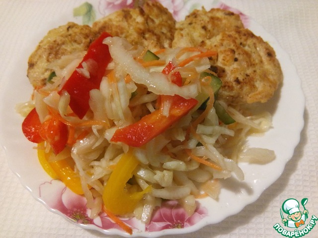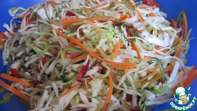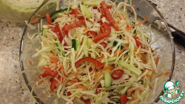 Вес каждого продукта указан в очищенном виде. Капусту нашинковать.