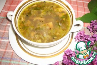 Режем зелень и чеснок, добавляем в суп. Доводим до кипения, выключаем. Даём настояться 5 минут, раскладываем по тарелкам.