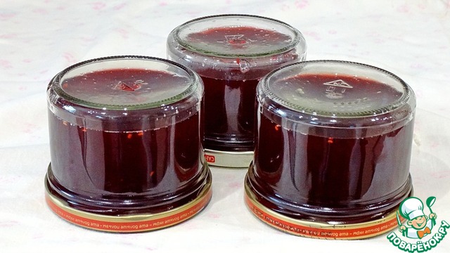 Горячий джем разлить в подготовленные стерильные банки, герметично закрыть стерильными крышками. Банки перевернуть на 5-7 минут вверх дном, после чего поставить крышками вверх, укутать и дать полностью остыть. -