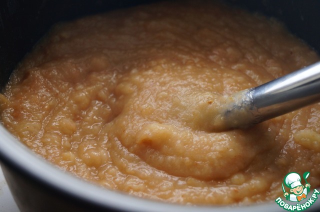 Добавляем 1 кг яблочного пюре. Солим по вкусу.