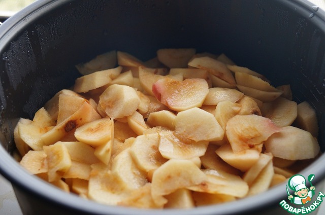 Яблоки моем, чистим и нарезаем произвольными дольками.