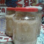 После этого раскладываем в стерилизованные банки, закрываем стерилизованными крышками, закупориваем и переворачиваем до остывания.
