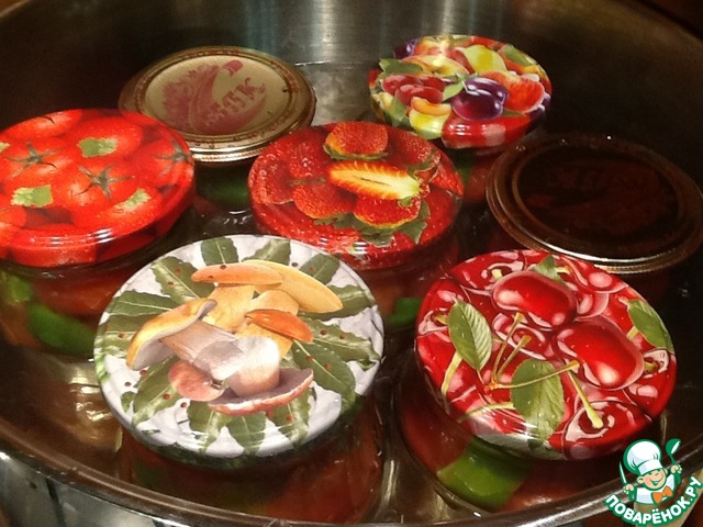 Крышки помыть, простерилизовать (кипячу их минуты 3-5). Положить на последние пару минут на банки. До того как положите крышки насыпать 1 ч. л. соли на банку от 0,7 до 1 л.