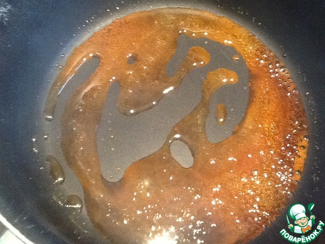 Сначала надо приготовить сироп крем-брюле. 40 г сахара растопить до темно-коричневого цвета.