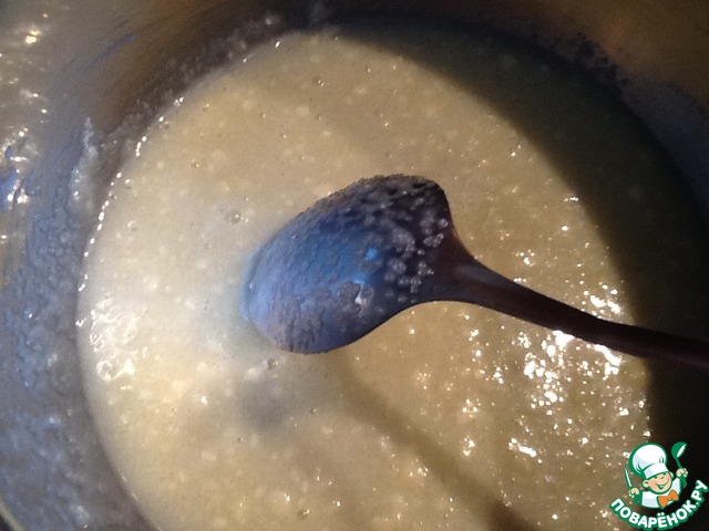 Влить в кашицу сироп крем-брюле...