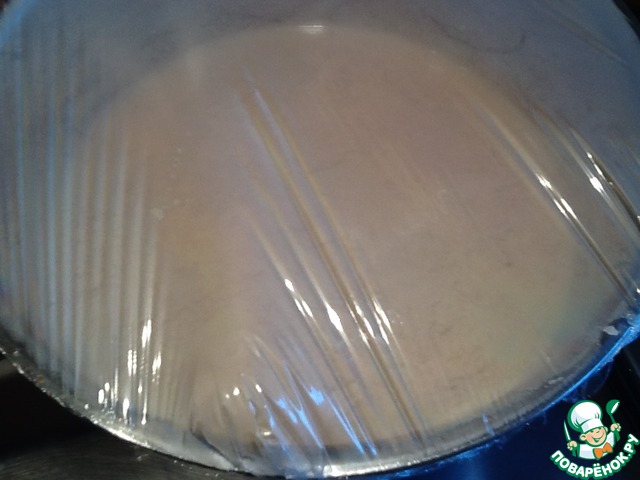 Накрываем пленкой, остужаем и убираем в холодильник для полного охлаждения.